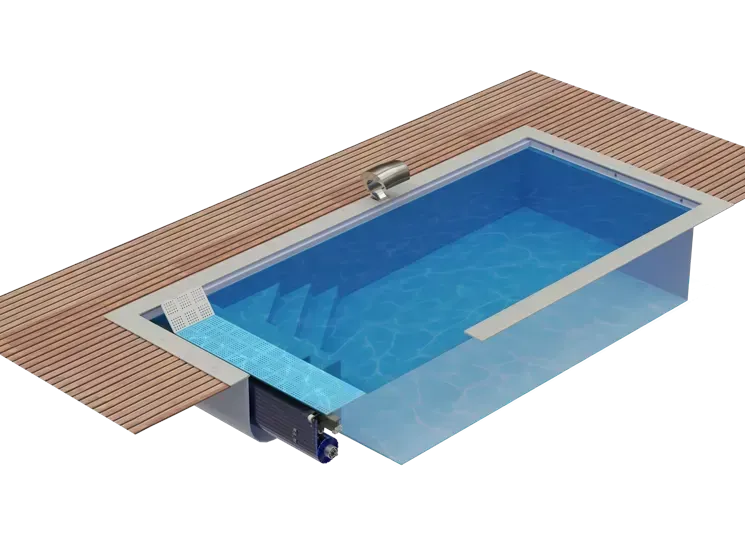 - Effet miroir garanti (skimmer XL de série) : Pour une ligne d'eau quasi invisible, donnant l'impression d'une surface d'eau infinie et d'une pureté visuelle incomparable.