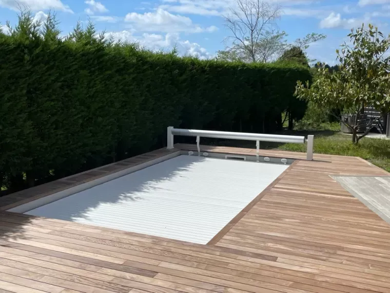 Idéalement agencée avec sa terrasse bois, elle est équipée pour votre sérénité : pompe à chaleur Hayward pour une eau parfaite plus longtemps, gestion complète de l'eau pour un entretien minimal, et volet Maytronics pour une sécurité simplifiée.