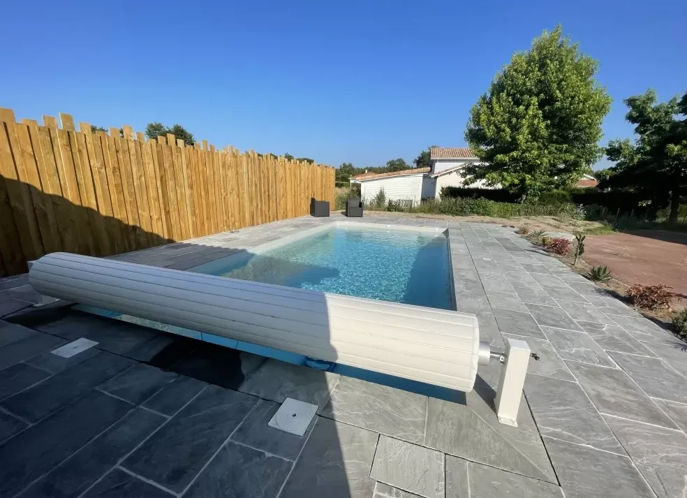 Avec ses dimensions généreuses de 8,30 x 4,00 m et son fond plat de 1.50 m, elle est idéale pour toute la famille avec son large escalier banquette pour les enfants.