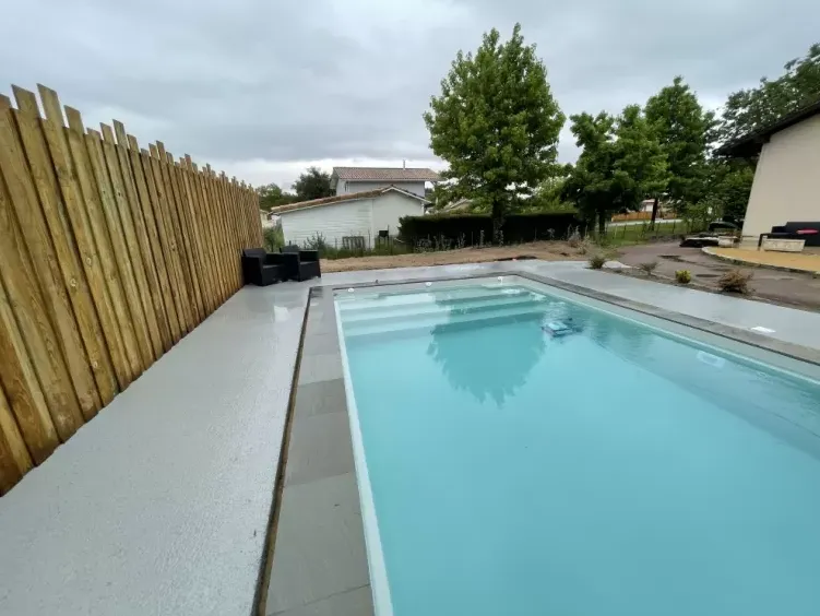 Avec ses dimensions généreuses de 8,30 x 4,00 m et son fond plat de 1.50 m, elle est idéale pour toute la famille.